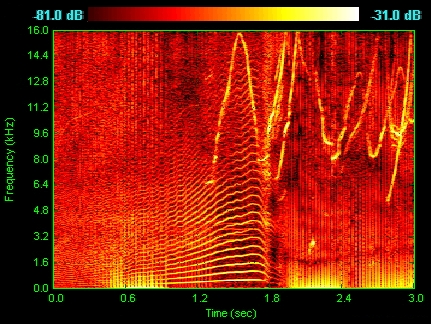 English: Cacaphony of Dolphins ... Spectrogram of their Clicks, Whistles, and whines.