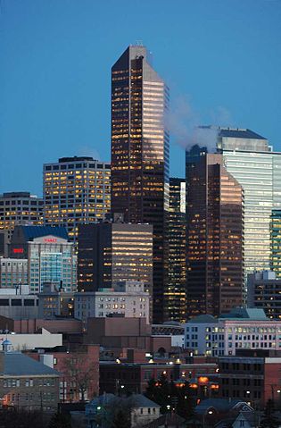 The Petro-Canada Centre in Calgary, Alberta. Photo by Chuck Szmurlo taken at dawn, April 5, 2005 with a Nikon D70 and a Nikon 18-70 lens