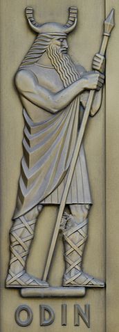 English: Odin, sculpted bronze figure by Lee Lawrie. Door detail, east entrance, Library of Congress John Adams Building, Washington, D.C.