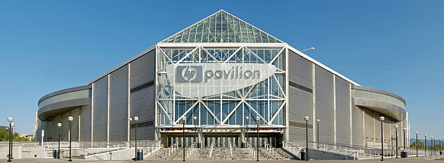 English: The HP Pavilion is a sports venue in San Jose, California, best known as the home of the San Jose Sharks (pro hockey), but also hosts the SAP Open (men's tennis tournament) and San Jose SaberCats (arena football). It hosts about 160 events a year, seating just under 20,000 people (the amount of seating available depends on the event).