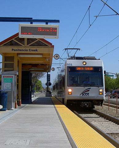 English: A light rail car at Penitencia Creek Station in Berryessa, San Jose, CA.