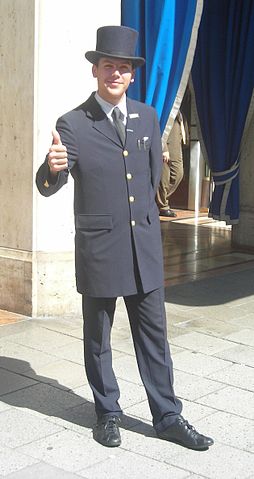 English: A Porter of a luxury hotel in Munich " thumbs up".