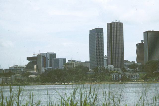 English: Towers on Ébrié Lagoon, in the Plateau District, Abidjan, Côte d'Ivoire.