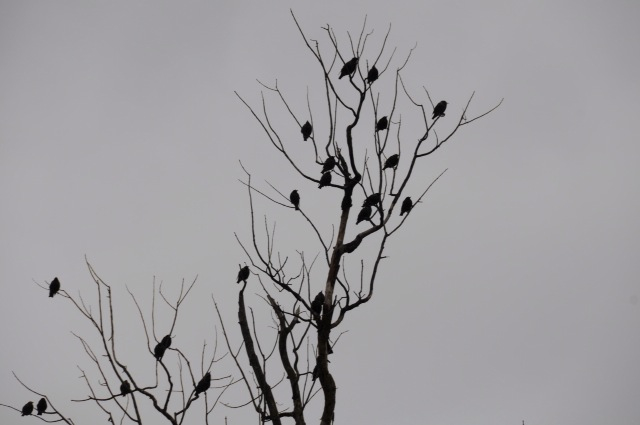 English: Starlings rest in autumn evening, Ottawa, Canada. The title of this work at its source is: Starling Light, Starling Bright.