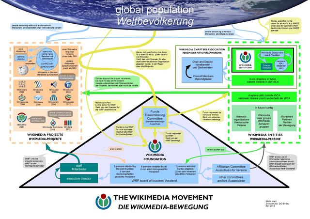 English: The Wikimedia Movement in November 2012. Organization chart with the Wikimedia Foundation, the associations and the projects.