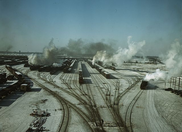English: General view of Proviso Yard, one of the classification yards of the Chicago and Northwestern Railroad, Chicago, Illinois.