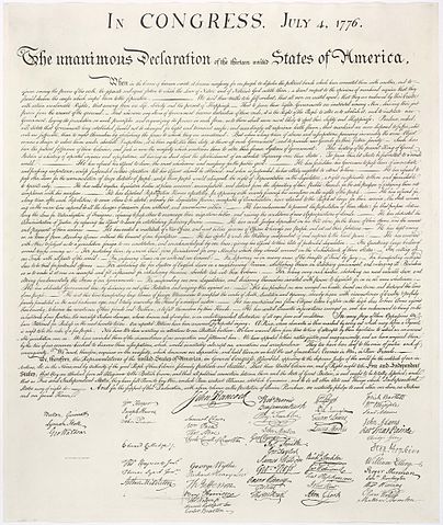 English: This is a high-resolution image of the United States Declaration of Independence ( article - text). This image is a version of the 1823 William Stone facsimile — Stone may well have used a wet pressing process (that removed ink from the original document onto a contact sheet for the purpose of making the engraving).