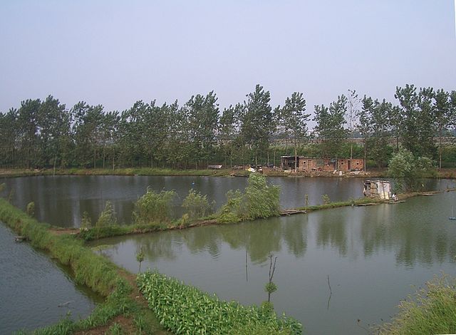 English: People fishing on a system of ponds constructed on a bay of the Daye Lake, on, on the south sude of the Daye Town (Huangshi CIty, Hubei). Not sure if one has to buy a ticket to fish there, or if it's free-for-all.