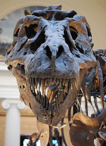 English: Close up of "Sue" T-Rex replica skull at the Field Museum of Natural History in Chicago, IL.