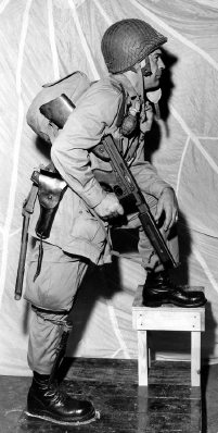 English: Sgt Major Runyon models for Fort Bragg (North Carolina)'s " Iron Mike" statue. From a 1961 US Army public relations photo.
