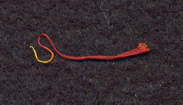 Magnified view of Greek red crocus thread. Length is about 20mm. |