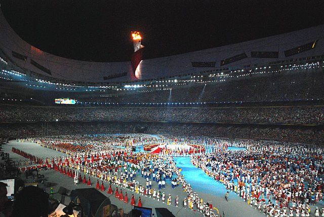 Français : Le nid d'oiseau, Pékin, durant la cérémonie de cloture des Jeux Olympiques 2008, le 24 août