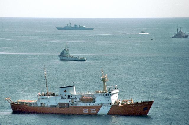 - "Canadian Coast Guard Cutter CCGV Hudson (foreground) conducts Laser Line Scanning (LLS) operations with the latest U.S. Navy high-tech underwater search equipment at the crash site of Swissair Flight 111.