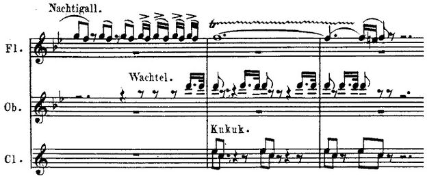 English: "Birds' song" from the second movement of Ludwig van Beethoven's Symphony No. 6 in F major (Pastoral)