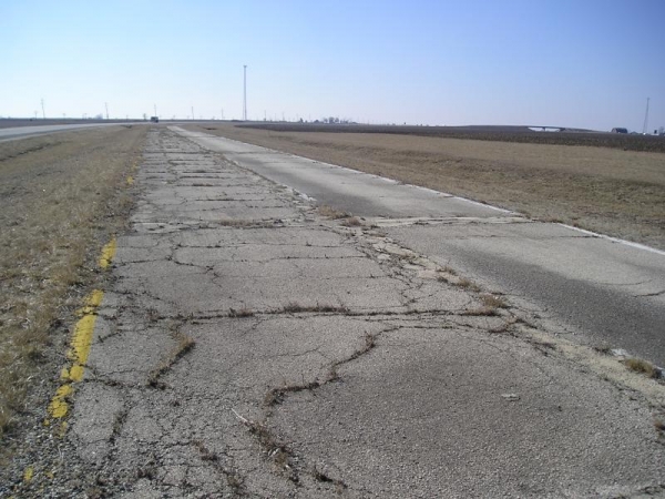 An abandoned early Route 66 en:alignment in southern Illinois in 2006. (Photo courtesy of Shawn Mariani of shawnmariani.com) |