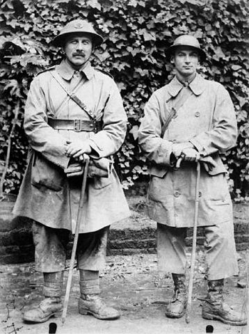 English: Captain Bernard Montgomery DSO with a fellow officer of 104 Infantry Brigade, 35 Division, with which he served from January 1915 until early 1917. He was awarded the DSO for conspicuous gallantry on 13 October 1914 during the Battle of the Aisne in which he was wounded.