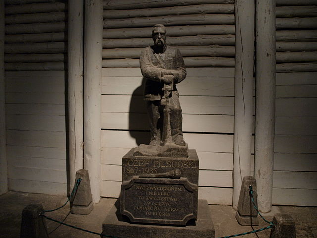 English: A statue of Josef Pilsudski, the marshal of Poland, made entirely from rock salt. This statue was constructed by uncredited Polish salt mine workers to honour their national hero. The photograph was taken by me.