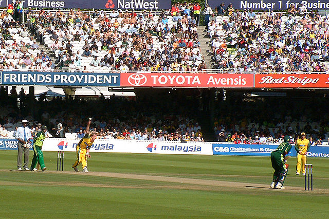 Description Brett Lee bowling at Lords against Pakistan. ICC Champions Trophy 2004, warm up game, 4th September 2004.