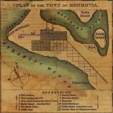 English: Map of an early plan of w:Monrovia, Liberia circa 1830.
