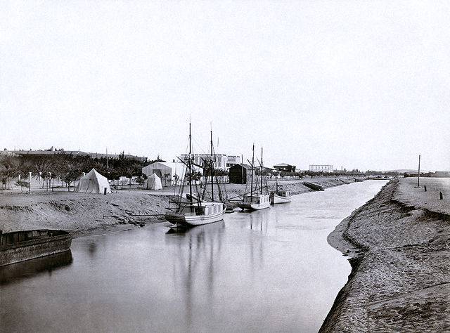 "The freshwater canal at Ismailia" albumen print. Designed by French engineers, it was constructed between 1861 and 1863.