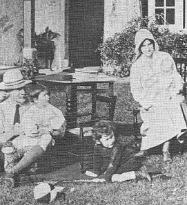 Lieut. Gen. Robert Stephenson Smyth Baden-Powell (1857–1941) with his wife Olave Baden-Powell (1889–1977) and their three children in 1917, at home near Horley in Surrey, England; Left–to–right: