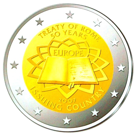 English: €2 commemorative coin Euro Zone 2007 50th Anniversary of the Signature of the Treaty of Rome
