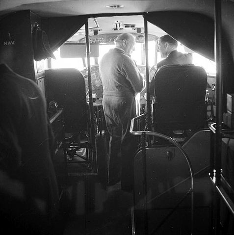Prime Minister Winston Churchill and Captain John Cecil Kelly-Rogers in the Boeing 314 flying boat Berwick, January 1942