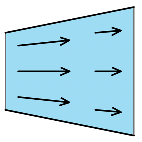 English: An example of convection. Though the flow may be steady (time independent), the fluid decelerates as it moves down the diverging duct (assuming incompressible or subsonic compressible flow), hence there is an acceleration happening over position. Self made (by Ben pcc at English Wikipedia).