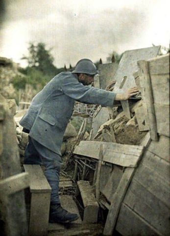 English: WW1 - French Army lookout at his observation post. Eglingen, Haut-Rhin 1917-06-23