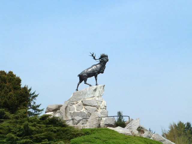 Royal Newfoundland Regiment Memorial in Beaumont Hamel. Caribou memorial overlooking the ground across which the Newfoundland regiment advanced on 1st July 1916. |