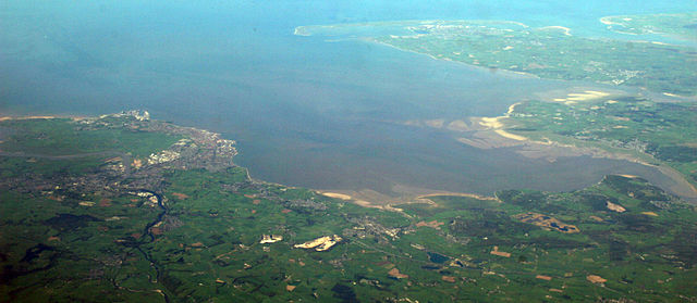 English: A veiw over Morecambe Bay showing Barrow-in-furness, Morecambe and Lancaster