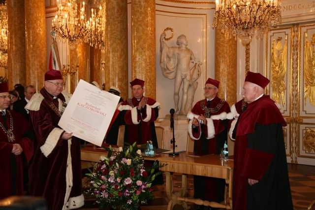 Polski: Warszawa, Zamek Królewski. Uroczystość wręczenia dyplomu doktora honoris causa Ryszardowi Kaczorowskiemu.