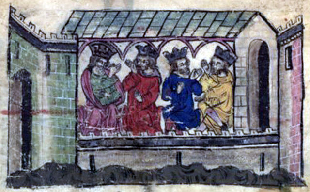 Русский: Ханы четырёх улусов: Тэмур (Юань), Чапар (Улус Угэдэя), Тохта (Золотая Орда), Олджейту (Улус Хулагу). Гетум Патмич, Fleur des histoires d'orient («Цветник историй земель Востока»).