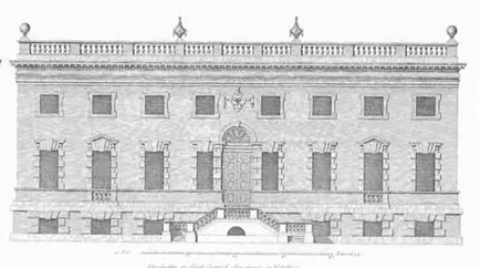 South facade, was designed by Colen Campbell and completed in 1720. The design is based on Palladio's Villa Emo.]] |