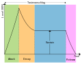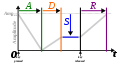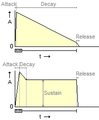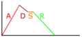 Image of how the four parameters A, D, S and R change the shape of an ADSR envelope.
