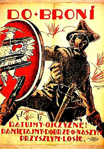 English: Polish-Soviet War : Polish recruitment poster dated 1920 . Text reads: "To Arms! Save the Fatherland! Remember well our fate."