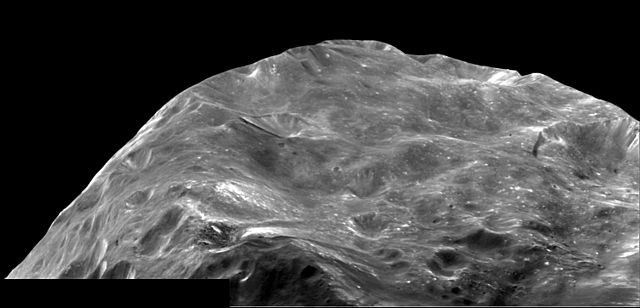 Cette image a été obtenue par la sonde Cassini-Huygens à une distance de 13000 km le 11 juin 2004. 1 pixel représente environ 80 mètres.