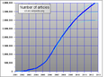 Number of article growth on en.wikipedia.org and Gompertz extrapolation