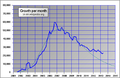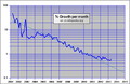 Percentage of article growth per month on en.wikipedia.org and Gompertz extrapolation