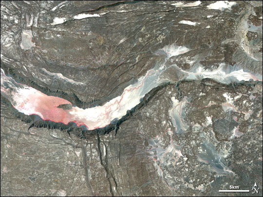 Infrared-enhanced satellite image of a w:graben in the w:Afar Depression, Ethiopia. |