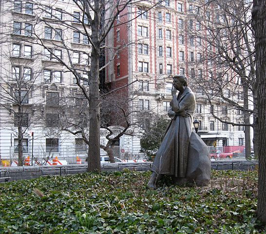 English: Eleanor Roosevelt memorial at Riverside Drive and West 72nd Street, Manhattan. I took this picture looking west on an early spring late afternoon.