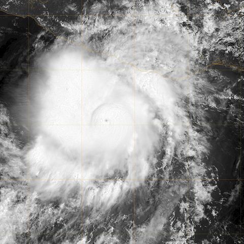 This image of Hurricane John was captured at 1718 UTC when it was located off the southern coast of Mexico. At the time, maximum sustained winds were 80 mph and the pressure was 983 mb. |