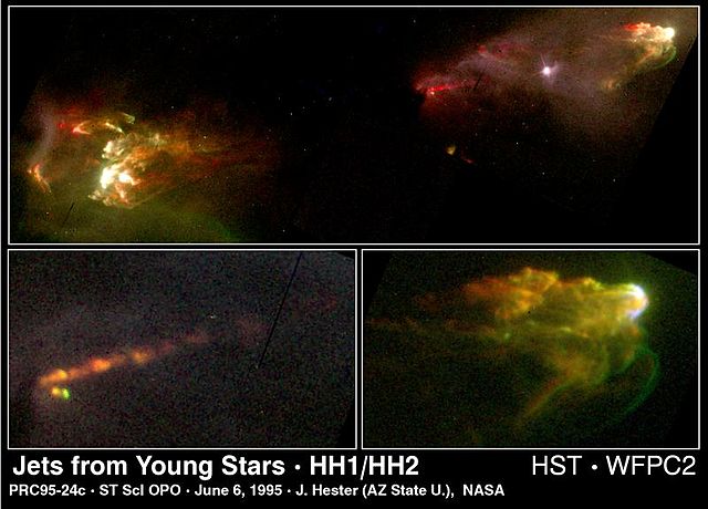 Herbig-Haro objects imaged by the Hubble Space Telescope's WFPC2. Credit J. Hester (ASU), WFPC2 Team, NASA.