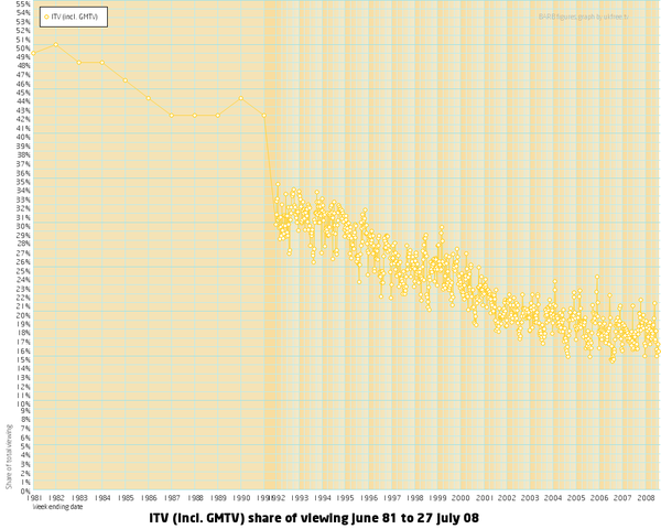 English: en:ITV1 share of viewing 1992-2007 from BARB figures
