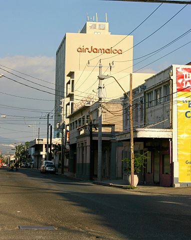 English: Former Air Jamaica building as photographed at a stoplight to the west of the building