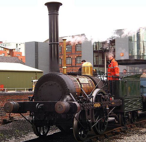 A working replica of Robert Stephenson's's 1830 locomotive Planet which ran on the Liverpool and Manchester Railway. Seen here at the Manchester Science Museum. |
