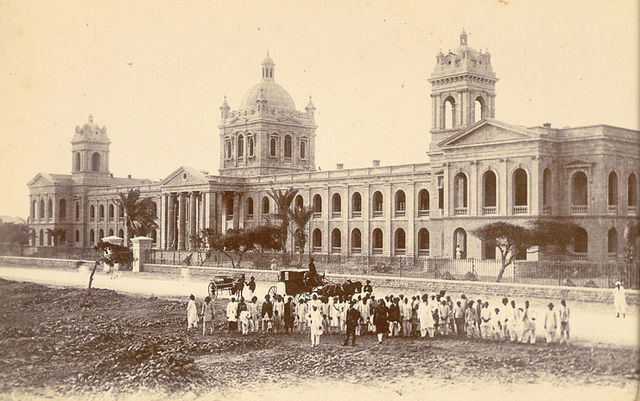 English: Photograph of the D.J. Sind Arts College (now known as the D. J. Government Science College) of Karachi, taken by an unknown photographer, c.1800, from an album of 46 prints titled 'Karachi Views'.
