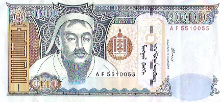 Billet de 1000 Tugriks de Mongolie (Recto) |