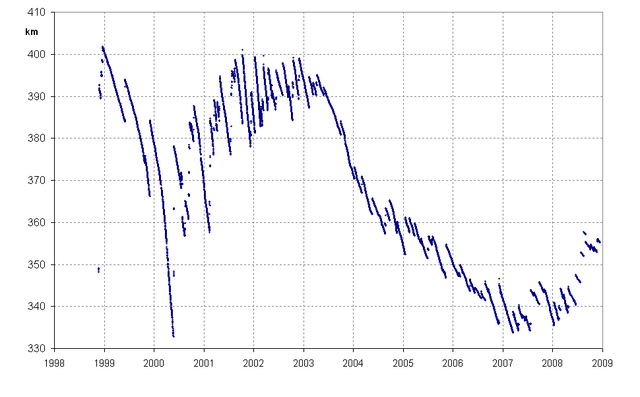 English: Mean altitude of the International Space Station from November 1998 until 2009