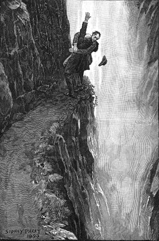 English: Sherlock Holmes and Professor Moriarty at the Reichenbach Falls. Ilustration by Sidney Paget to the Sherlock Holmes story The Final Problem by Sir Arthur Conan Doyle , which appeared in The Strand Magazine in December, 1893. Original caption was THE DEATH OF SHERLOCK HOLMES.